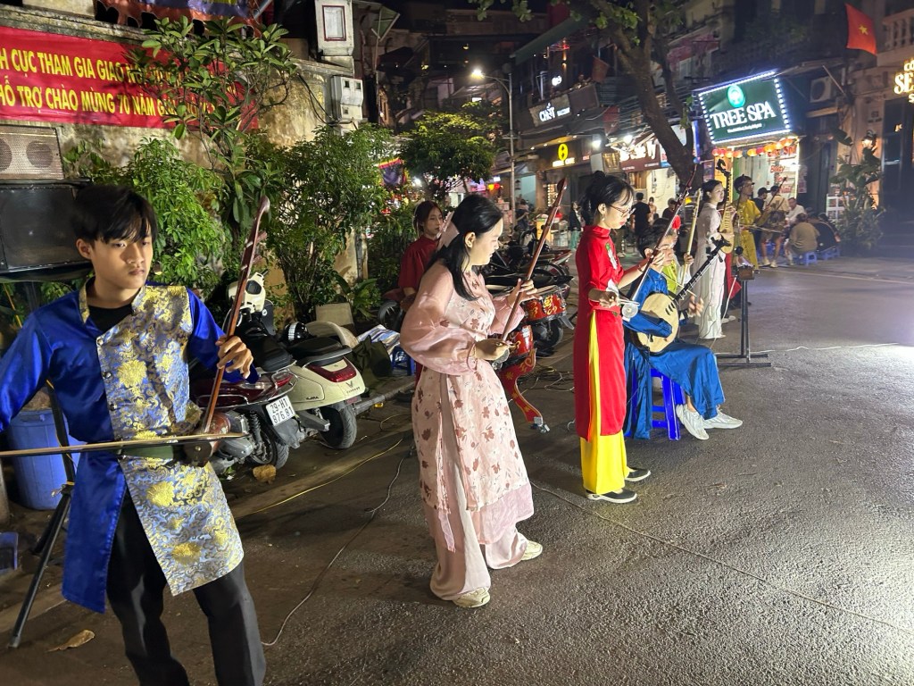 On one corner, a Vietnamese folk band were playing a cover of Despacito.