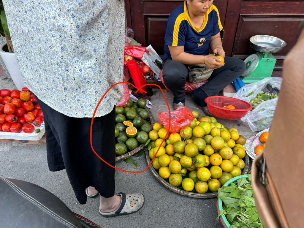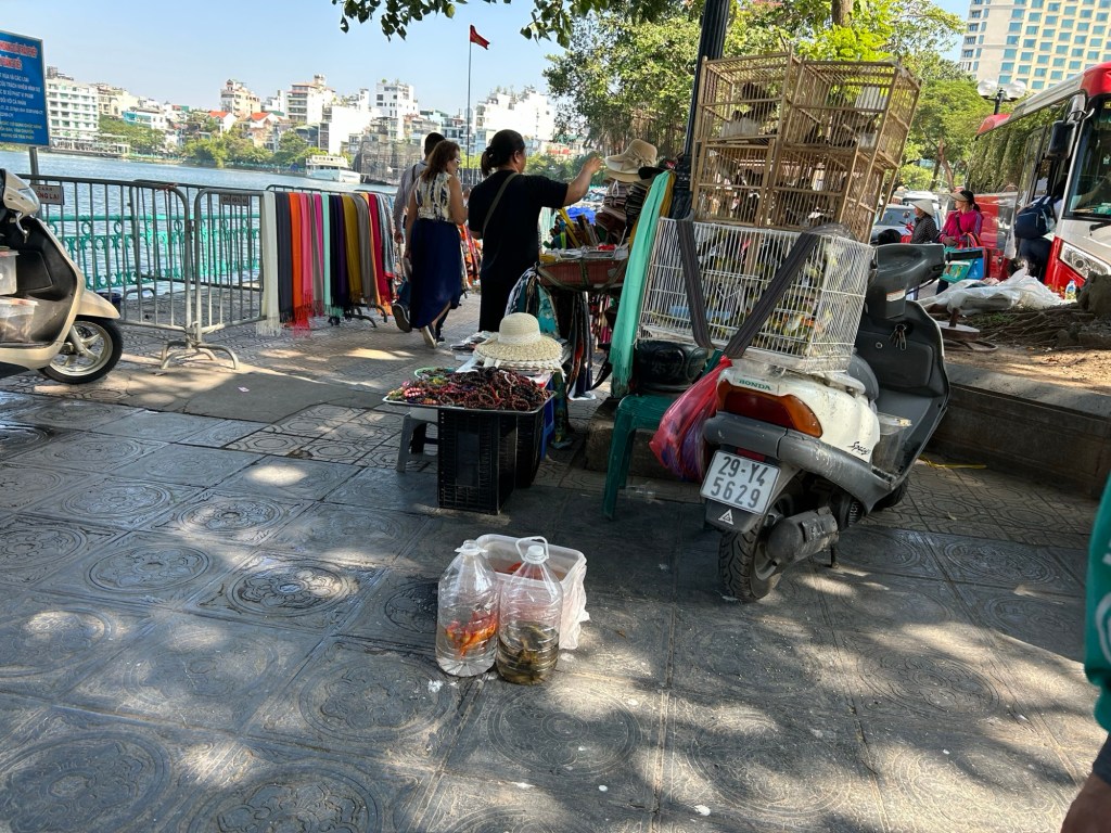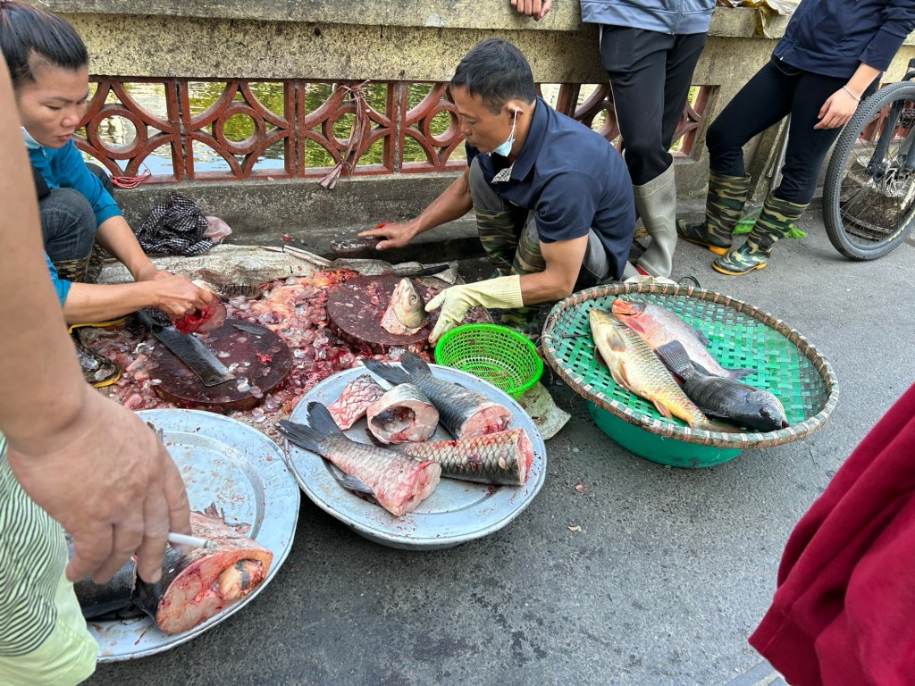 Following a lap of Huu Tiep Lake, Ly took us through a pop up food market. I say market, the food was sitting more on the street than any market stall. There was one person hacking a fish to pieces with a machete.