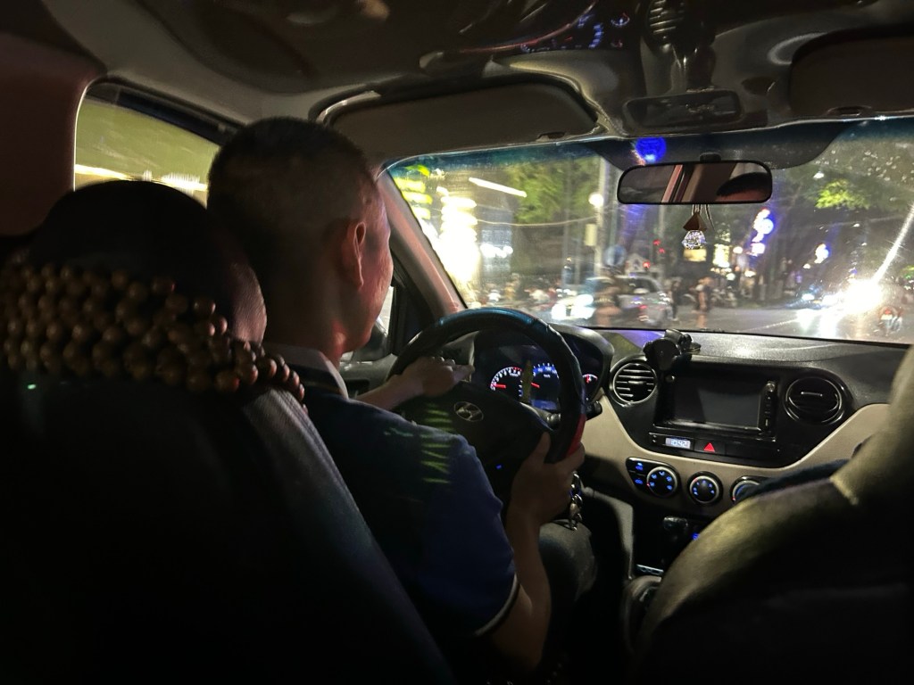 After a brief stop back at the hotel to get freshened up, we headed out for dinner via taxi. In the middle of the journey, the drivers phone rings, and it’s his wife video calling. He introduces her to us while weaving through the lanes & bikes with millimetre precision. Quite surreal.