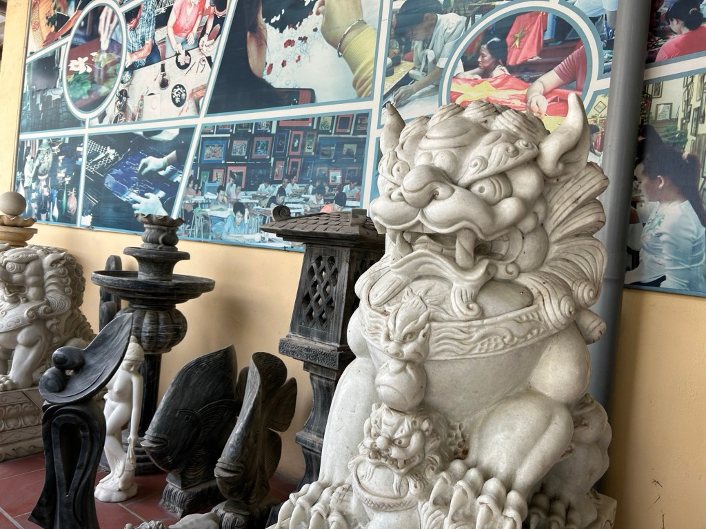 During the Vietnam war of the 1960s and 70s, some 400,000 people were killed or severely injured, and a further 500,000 children born with disabilities due to exposure to lethal toxins. These disabilities ranged from deaf / dumb to dwarfism and misshapen limbs. As many of these people were unable to work, this disabled centre trains them in embroidery, where they produce beautiful tapestries and then sell to make a living.
