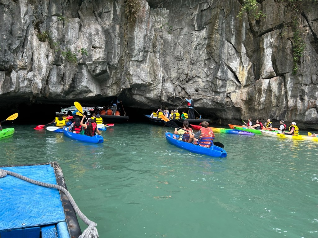 This morning’s excursion was to the Luon Cave for a spot of kayaking. Looking for a more relaxing experience (and to stay dry) I chose the alternative option – to be rowed by a local with 10-15 others.