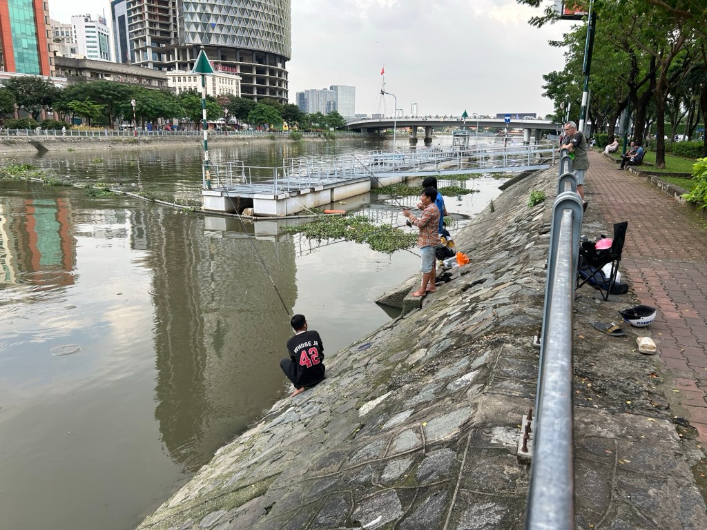 Across the river, a few men and women are fishing, but we don’t see any fish.