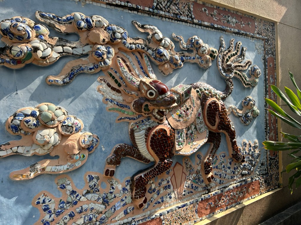 The temple itself is a fine work of art – blue mosaic tiles cover the roof. The Spanish would call this trencadis, but we’re not in Spain.