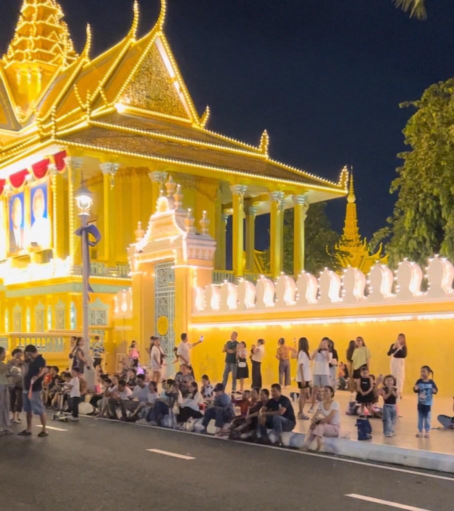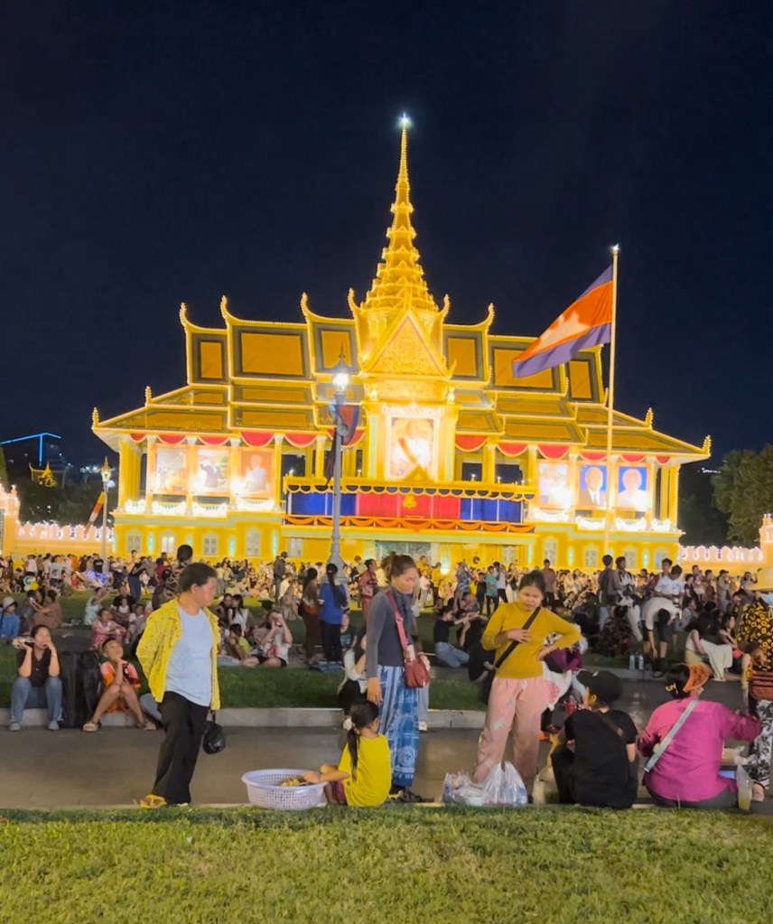 Suitably refreshed, we head on from Wat Botum, and aim to find the Royal Palace. A wrong turn sees us walk the long way round the back, and there’s a stream of people heading down to the river where it looks like something is happening.