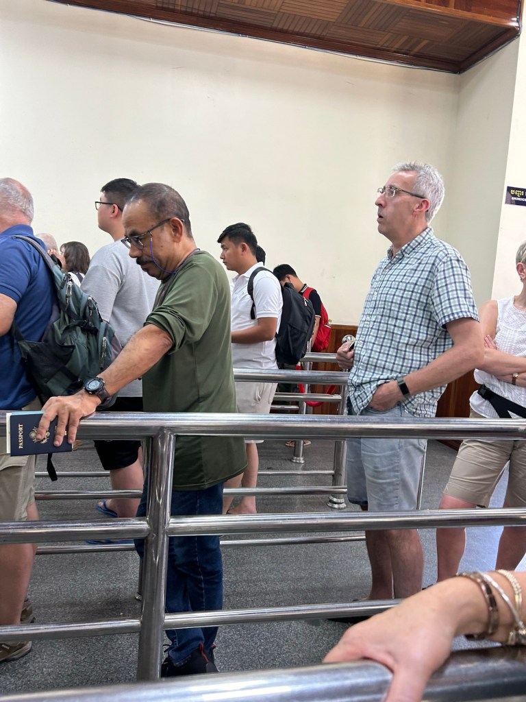 Stop 2 was at the Cambodian border in Bavet, about 60 km from HCMC where we had come from. With a strict schedule to observe, Mr Chow had now handed back passports to everyone on the bus. We would have to then queue up and go through passport control to leave Vietnam, and then again on the Cambodian side.