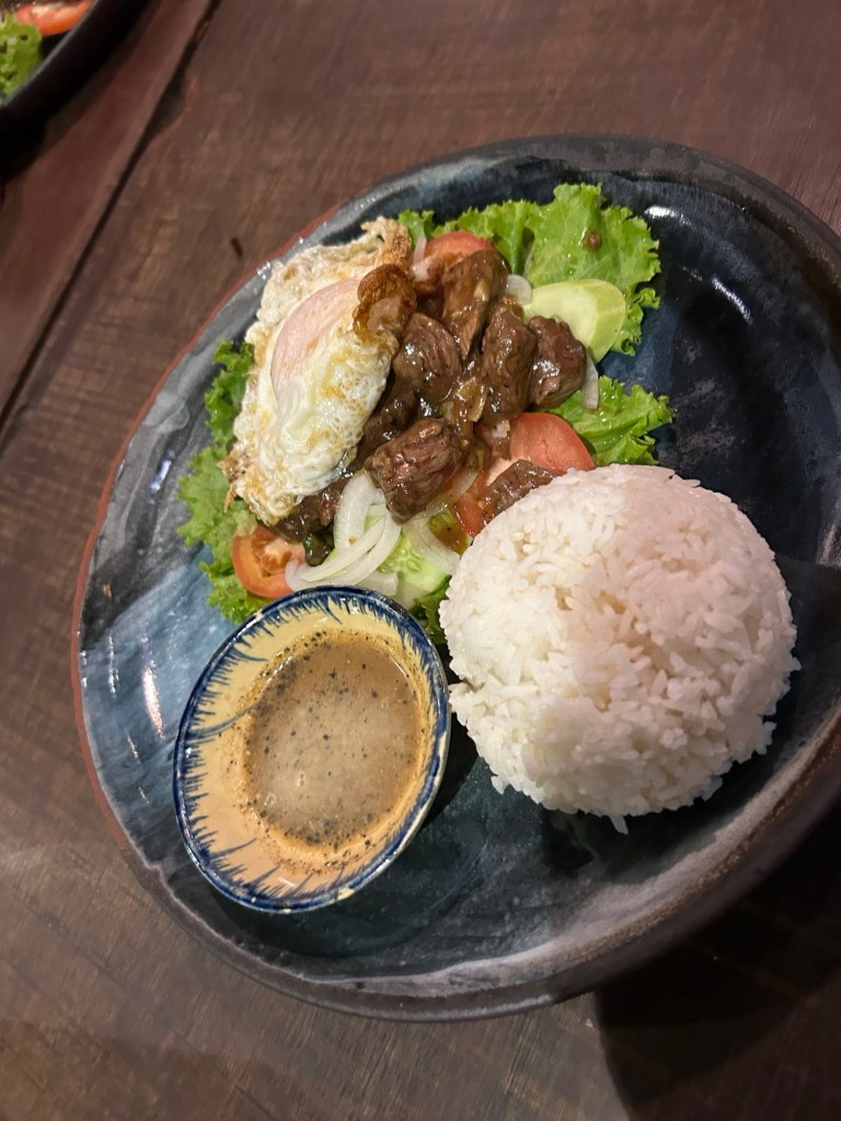 Sophie and Sok take us to the Kinin restaurant near our hotel. She recommends Lok Lak to us, as an authentic local dish. It’s beef chunks in a tangy peppered sauce with lettuce and a fried egg on top and is absolutely exquisite.