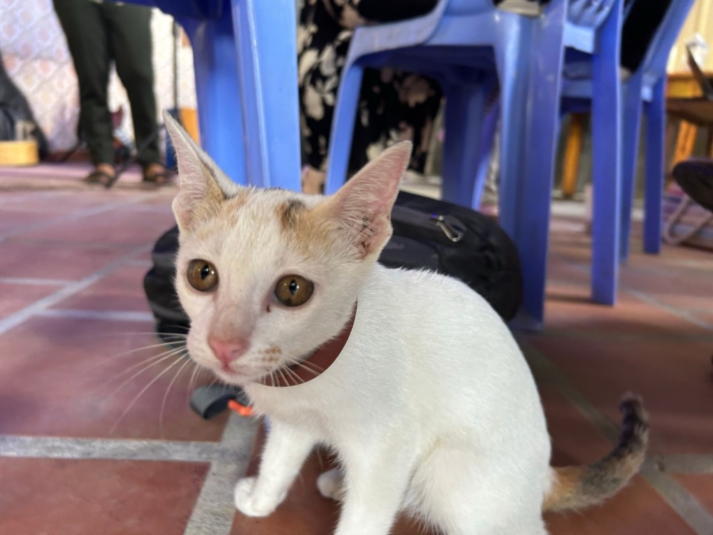 As we are introduced to some of the congregation, the worship band are warming up, kids running around, and a very small cat fondling our legs.