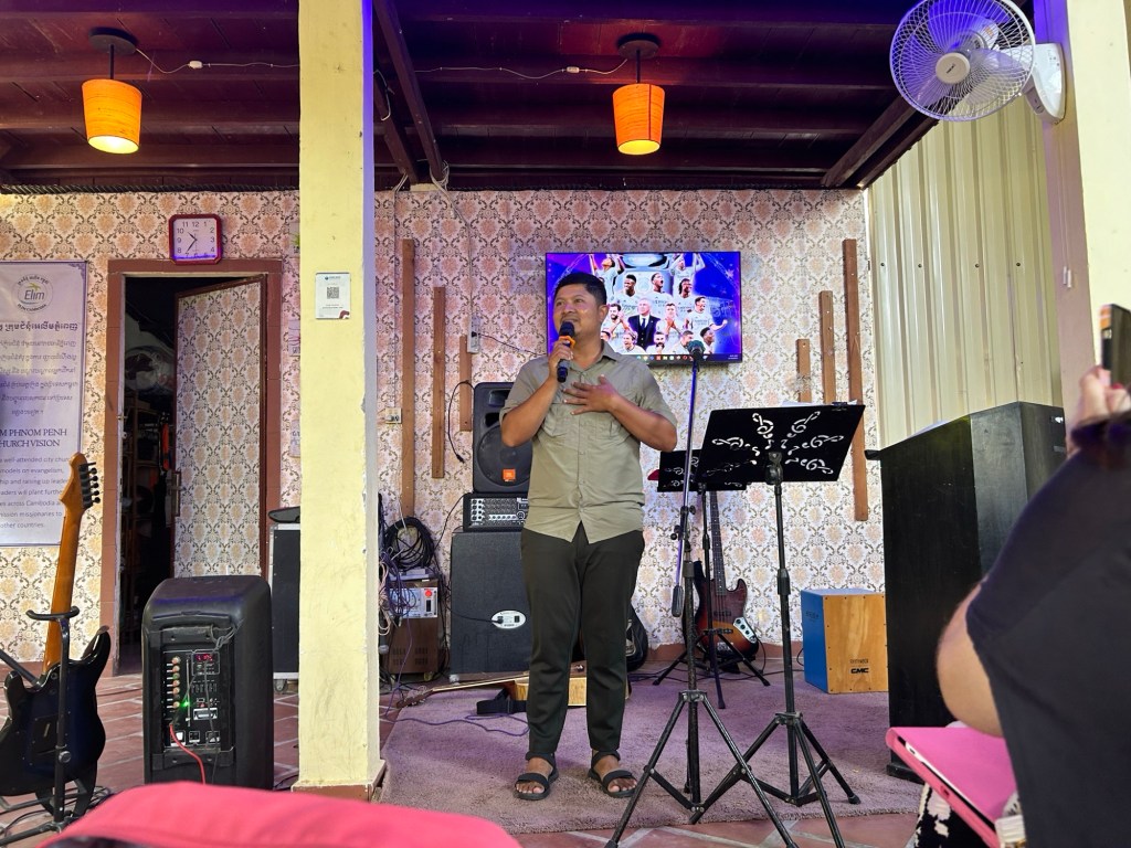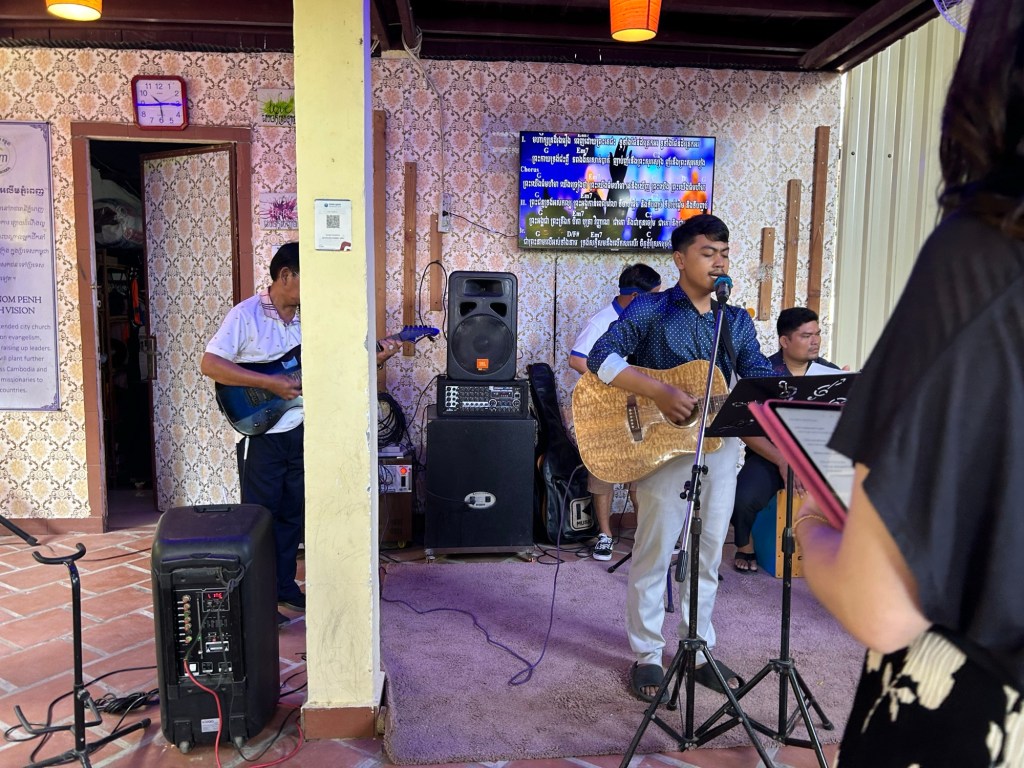 After Sophie opens the meeting (and we introduce ourselves in the most excruciatingly awkward way possible), the band strike up. All of the songs were in the local tongue (Khmer), so it was a blessed relief to get one we knew well for the last song.