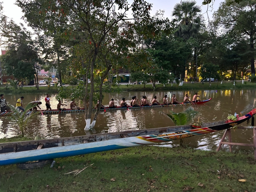 It turns out that there is a boat race here later in the week (Thursday and Friday) and teams are getting into the spirit and doing a spot of practice. It’s all tied in to the Water festival I talked about yesterday.