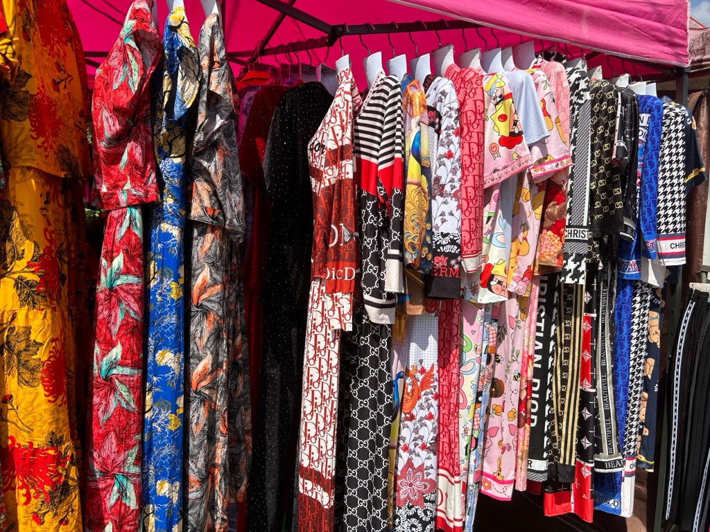 There’s a vast array of outfits being modelled by the people here. We’ve seen quite a few wearing (what looks like) silk pyjamas. Some are dripping in fake designer branding from to toe – the markets are full of this stuff. Elephant pants (trousers) are also very popular with the tourists. I bought a pair for my sister!