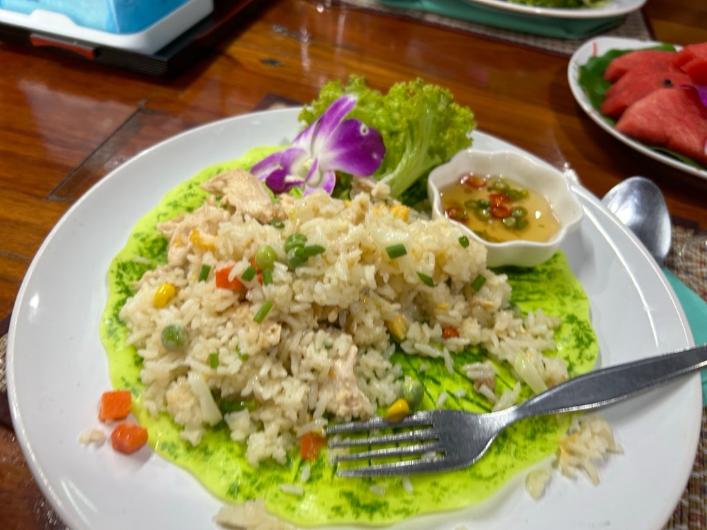 Lunch today was at a wee restaurant near the town of Sai Yok. It was a pretty tame salad & chicken risotto.