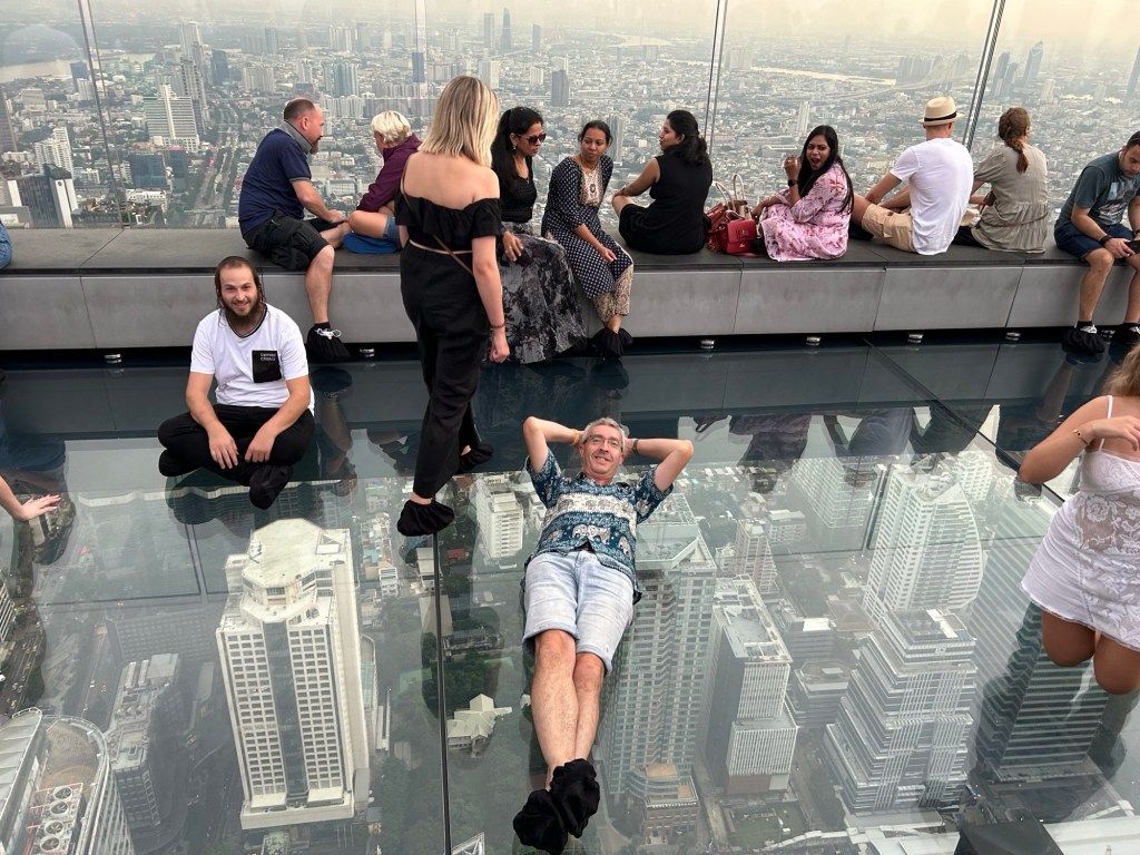 The bus dropped us off at the MKB shopping centre (which was a bit crap), so I promised mum a better shopping centre tomorrow and persuaded the fam to hot foot it over to the King Power Mahanakhon tower to catch what was left of the sunset. We were cutting it very fine!