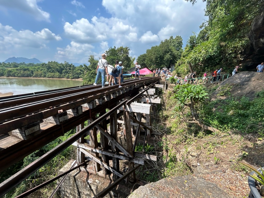 At the end of the journey, the train track curves to the left and we catch a glimpse of the iconic section of the death railway that appears in all the photos.