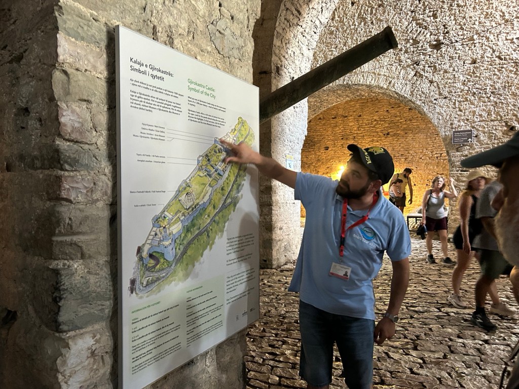 Bledi takes us inside the castle and gives us the full run down. The castle sits 336 metres over a valley. There’s a legend here of a Princess Argjiro living here in the 15th century. When the Ottomans came to invade, she jumped from the castle walls to her death to avoid being captured. It’s said the child survived.