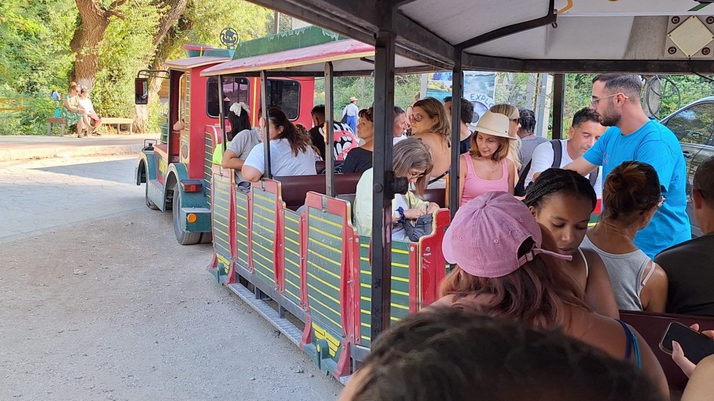 We finally arrive at the entrance to the Blue Eye, surrounded by thick forest, and board a tourist train (what we would call a ‘Dolly Trolley’) to save us the 2km walk. It’s only 600 Lek (€6) per person return, but saves a strenuous uphill walk in the heat.