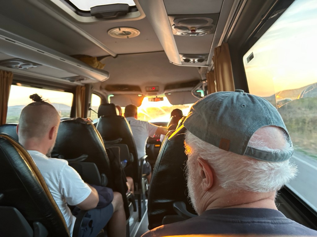 Soon enough, the bus does arrive. It’s already made its way from Tirana and pretty much everyone else is already on board. We’re welcomed by the tour guide named Bledi before heading on our merry way.