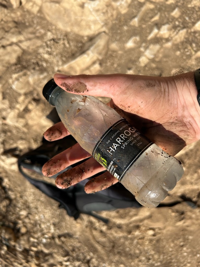 Now, the water is crystal clear, and the guide tells me it is drinkable. But getting it into the bottle is a different story, it’s a steep bank most of the way around, and I have no intention of getting my feet damp. So you can imagine the sight of me squatted on my honkers, stretching into the water, while gravity and my weight try to pull me towards the water. I did manage it, but the water around the edge was so muddy that it wasn’t worth drinking anyway.