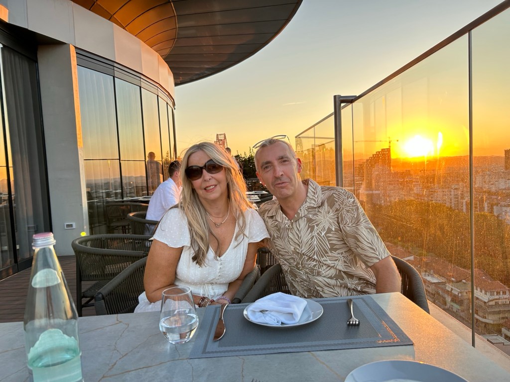 We have a reservation at the Sky Club restaurant, where a beautiful sunset and meal awaits. It’s a bit on the pricier side, but still cheaper than you’d find back home!