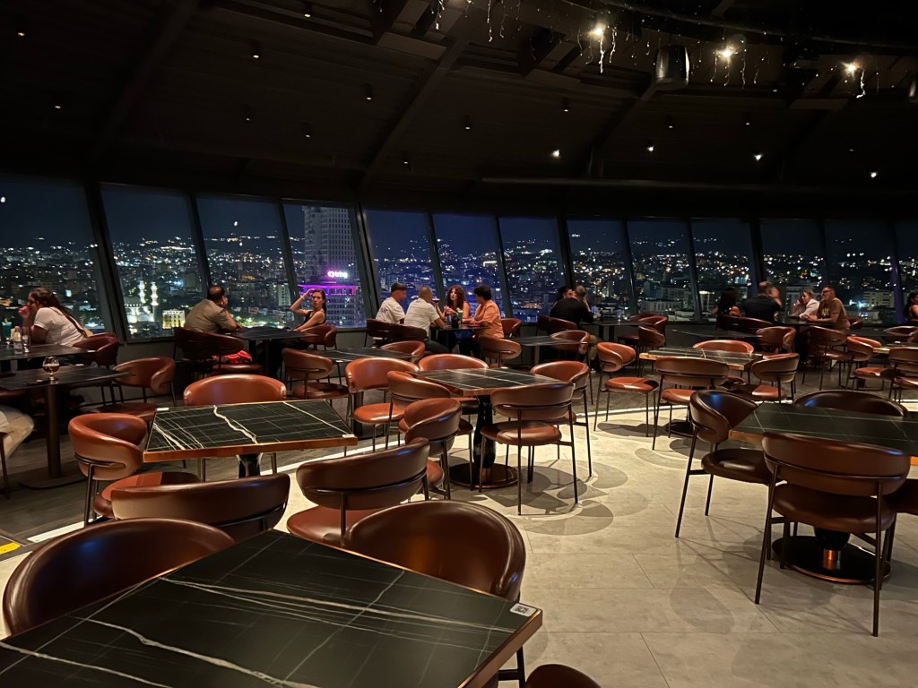Upstairs from the restaurant is Albania’s only revolving bar, although it revolves so slow, you can barely tell that it’s moving at all!
