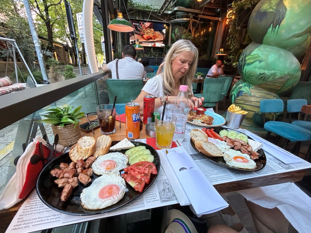 After the service, we headed 2 doors up for breakfast at a place called City Art. I went for the ‘Albanian Breakfast’. Which had Feta cheese, cucumber, tomato (basically a deconstructed Greek salad), bread, fried eggs, baby sausages. To be honest they had me already at Feta.