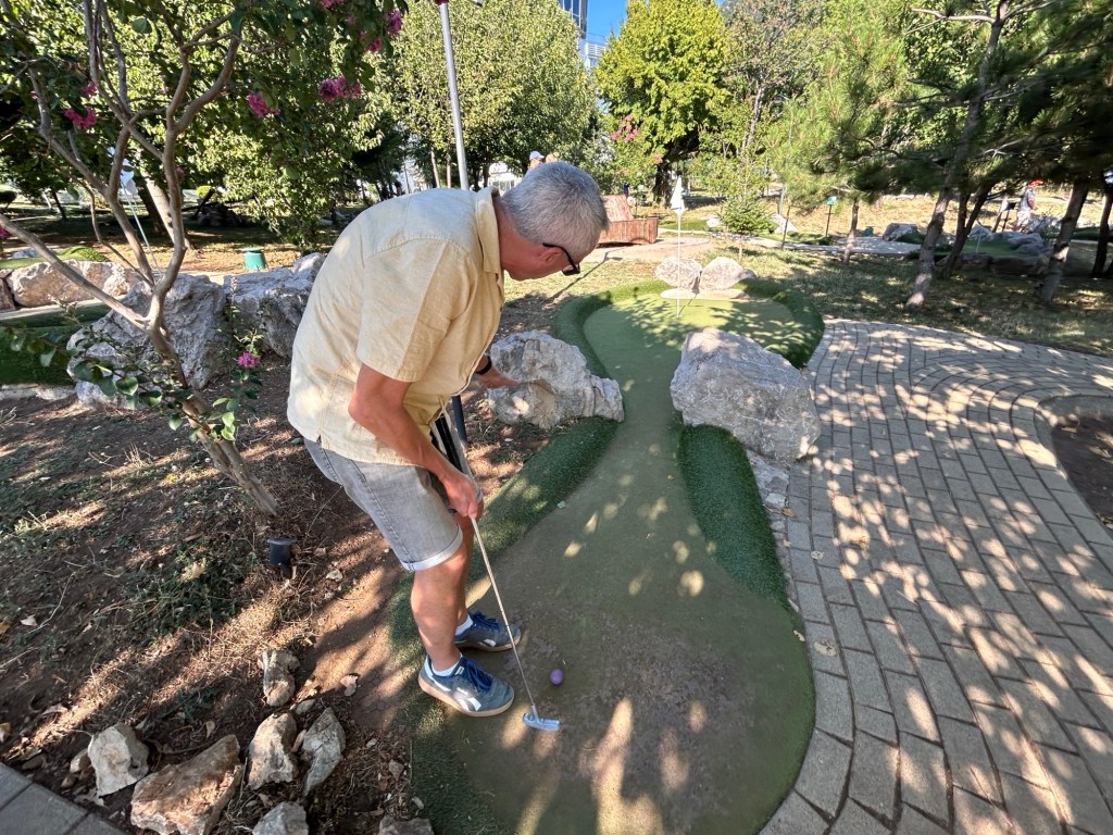 But it’s now a holiday tradition to have a round of crazy golf, and this course is the best of the best. With challenging gradients and bunkers to rival a championship golf course (albeit at a smaller scale), the holes are incredibly technical and unforgiving. It’s just Dad and I playing, but aside from a couple of wobbly moments in the middle, I have him covered pretty much from start to finish. That’s payback for Siem Reap! Two hole-in-ones as well, but no free beers this time (not that I drink them!)
