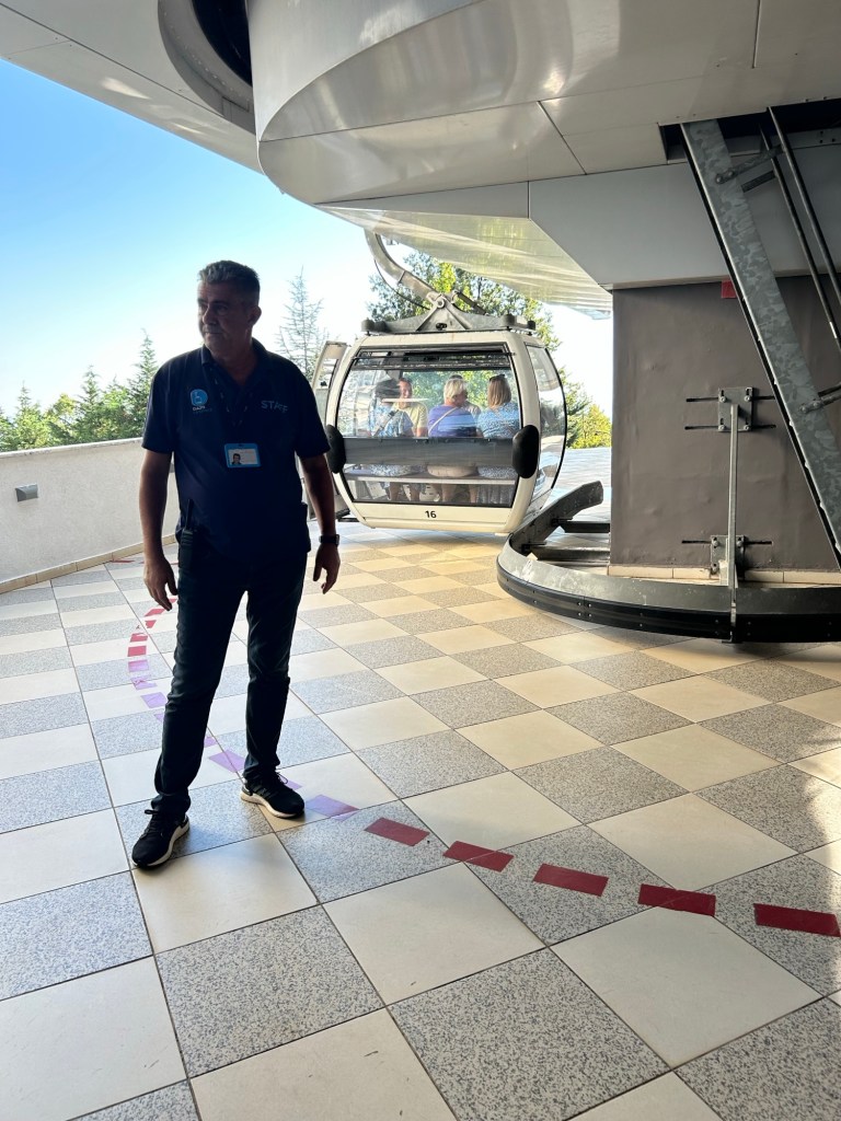 We arrive at the lower terminus to get our tickets – it’s 1500 (€15) each way. The journey is 4.354 km and takes around 15 minutes in each direction. There’s not much of a queue to get in one of the cars.