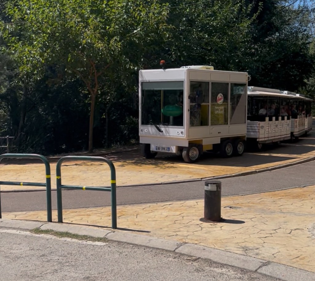 As we enter into the park itself, a very snazzy tourist train whizzes past. It’s a much more blockier train that you’d usually see in this situation – and looks like a cross between the pope mobile and a milk float.