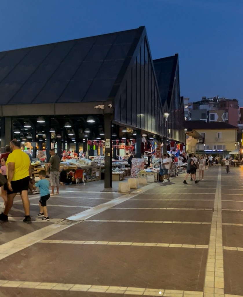 The setting sun has now cast a golden shadow over the clock tower. This was one of the things that was closed when we were last here on Sunday. It would have been nice to go up, but sadly it’s too late again today! Skanderbeg Square is now in total shade, but the lighting does look pretty cool for the big Albanian flag. There’s a lovely buzz about the place.